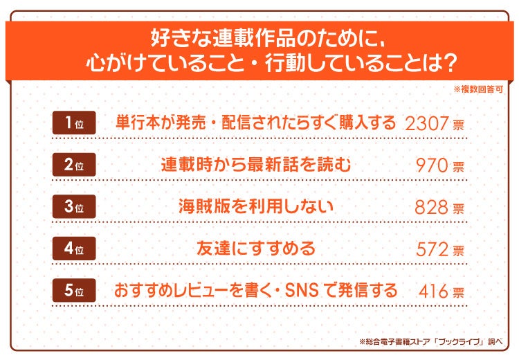 - 好きな連載作品のために、読者がしていることは?発売後すぐに購入、海賊版にNO、友達へのおすすめや拡散も