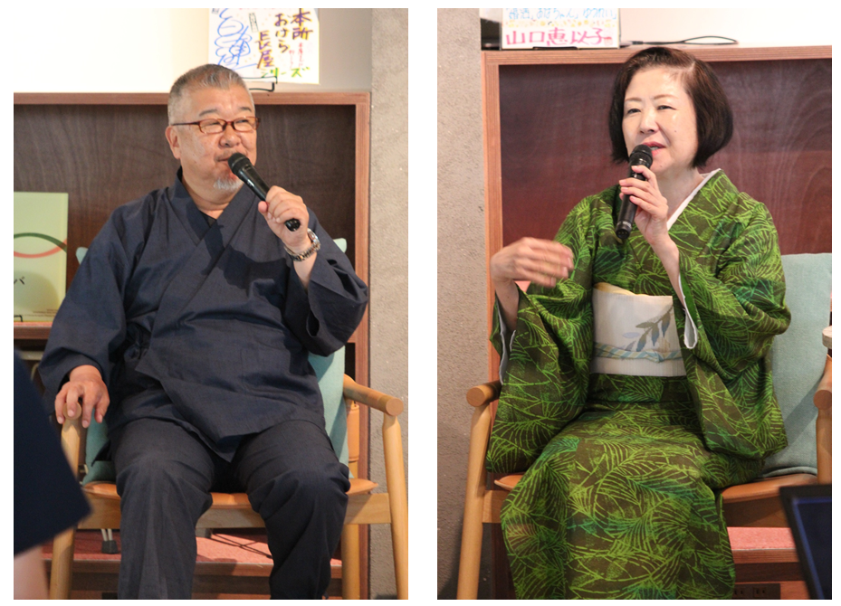 ▲左から、作家の畠山健二氏、山口恵以子氏