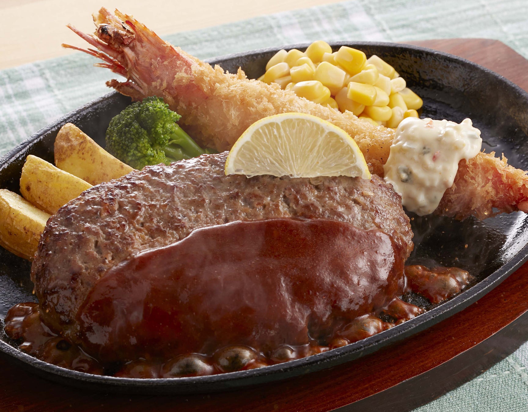 デミグラスハンバーグ&有頭えびフライ/1,099円(税込1,208円)