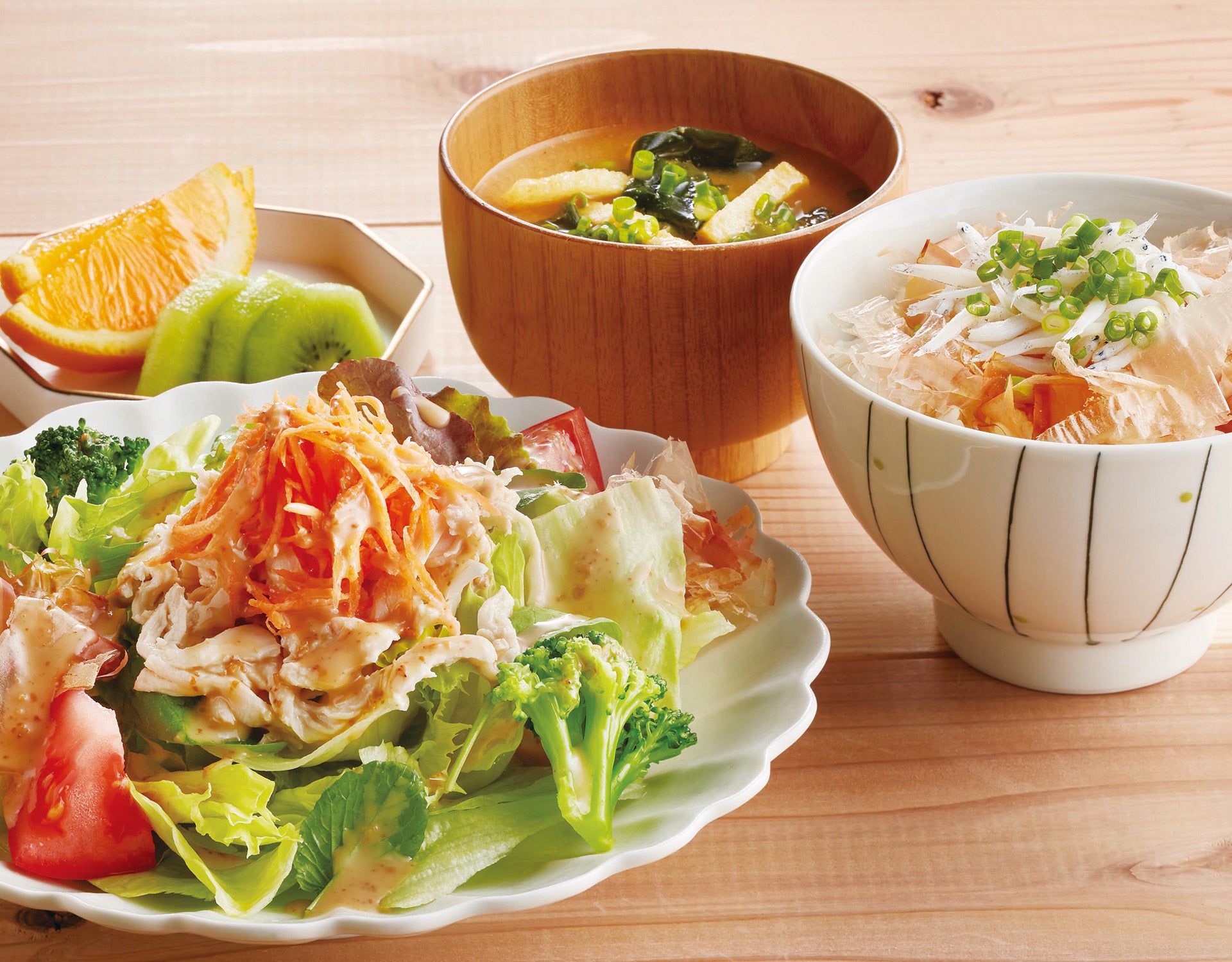蒸し鶏のゴマだれサラダと釜揚げしらす丼/839円(税込922円)
