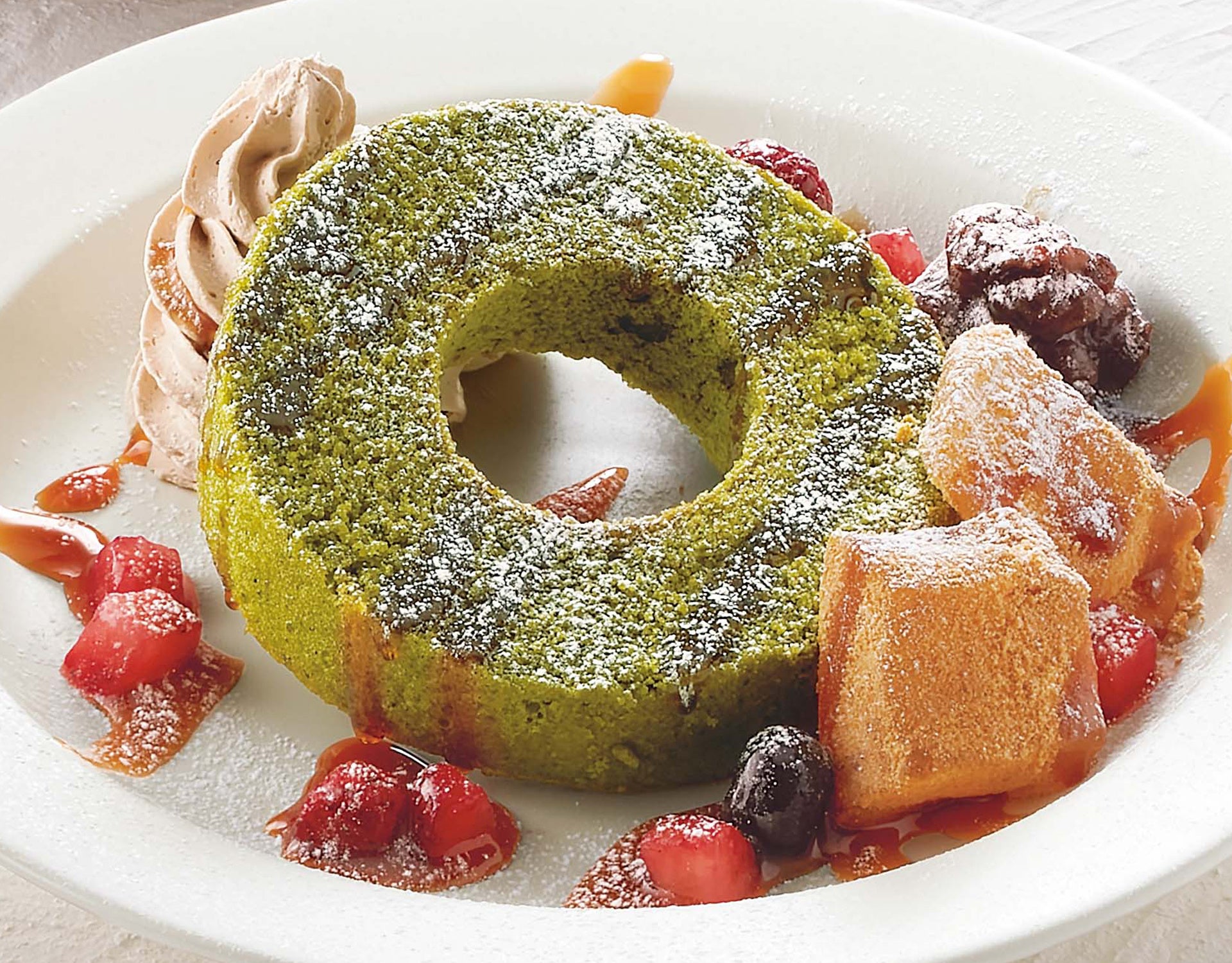 バウムクーヘンを使用したデザートはジョイフル初!和と洋が楽しめるよくばりスイーツです。