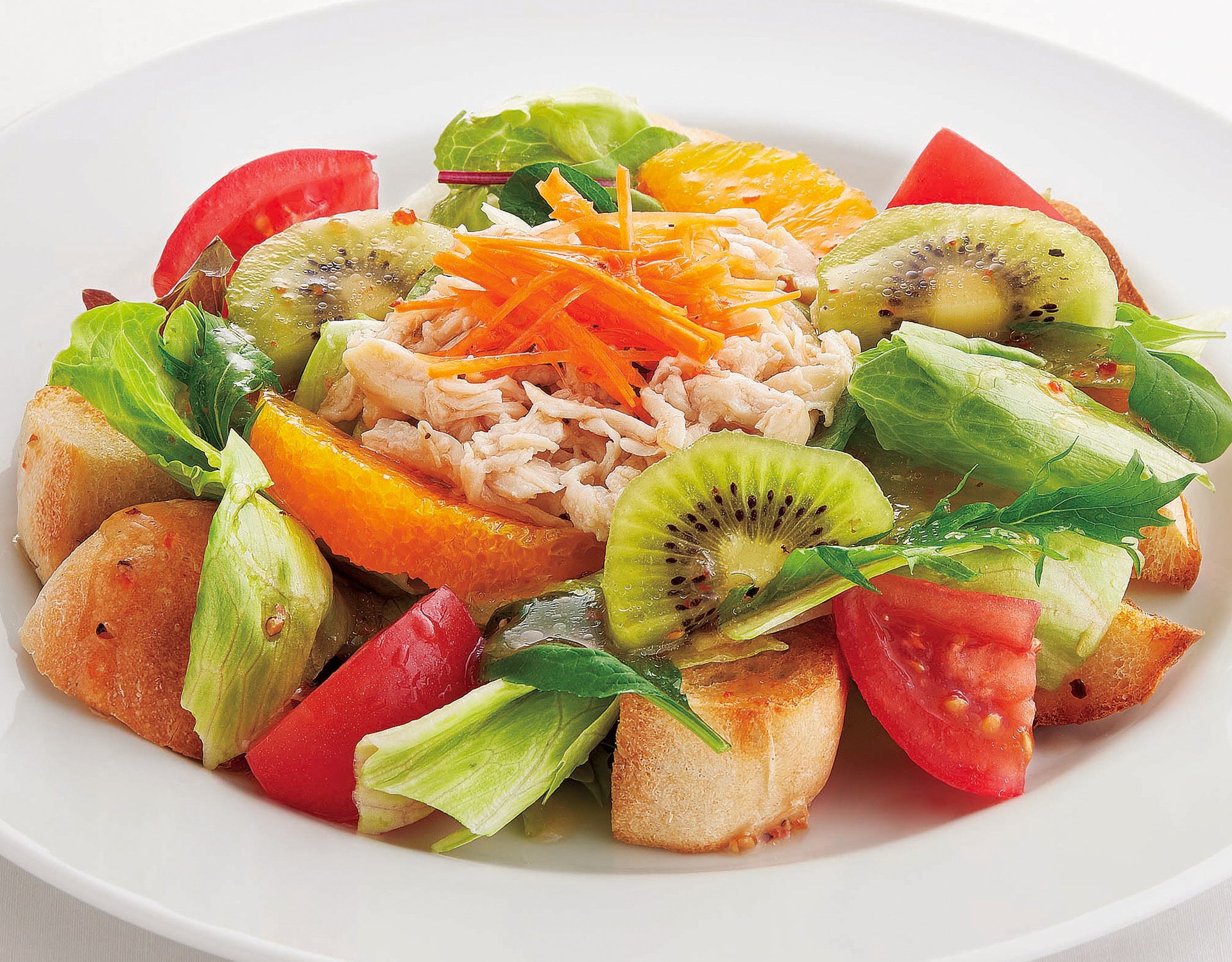 蒸し鶏とフルーツのブレッドサラダモーニング *ドリンクバー付/639円(税込702円)