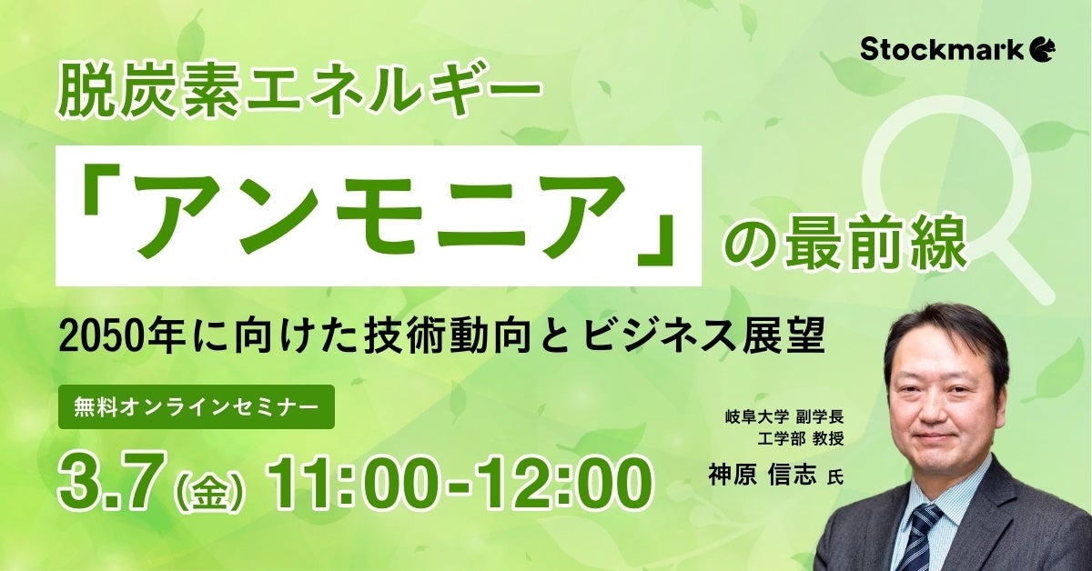 【3月7日(金) 無料セミナー】『脱炭素エネルギー「アンモニア」の最前線 ~2050年に向けた技術動向とビジネス展望~』を開催(ストックマーク主催)