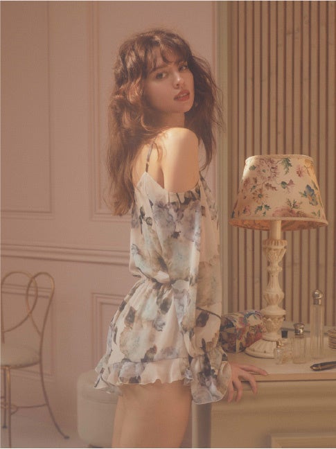動くたびにふわりと揺れる柔らかシフォン。ガーリースタイルで特別なおうち時間を。