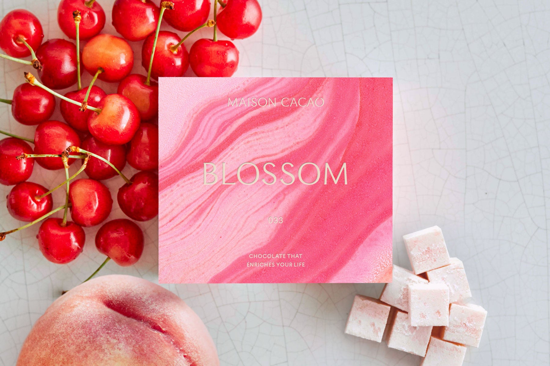 桃の節句 ひな祭りを祝い、優しい願いを込めた生チョコが登場愛情を込めて育てた白桃とさくらんぼを使用した華やかな味わい