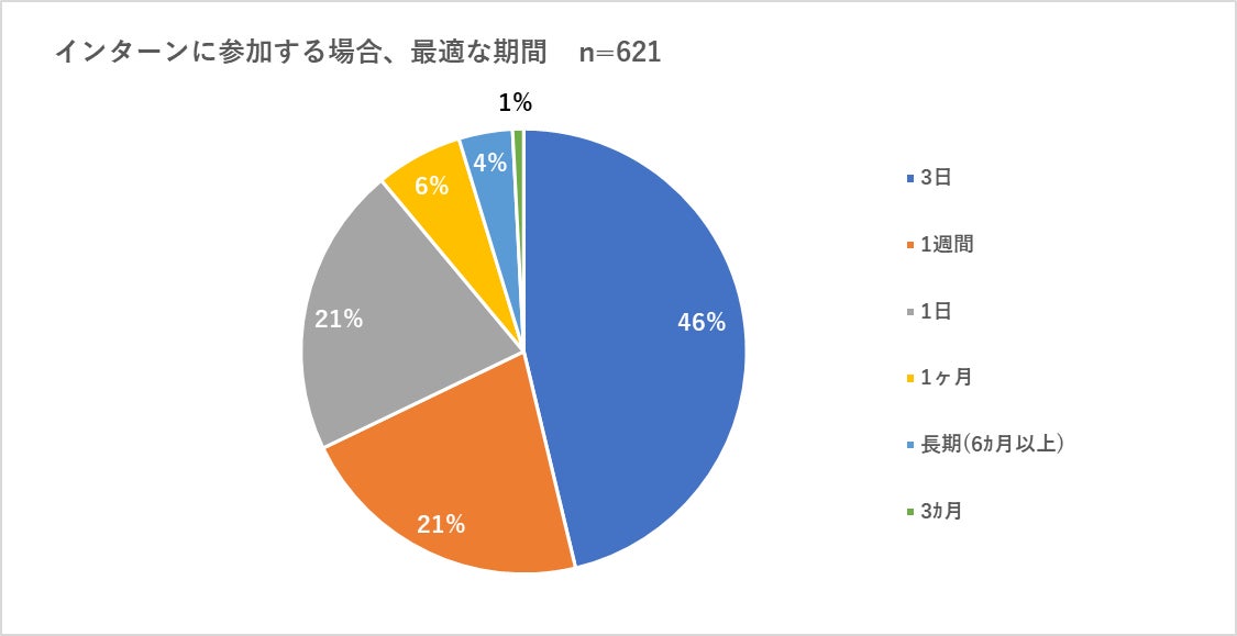 ■「インターンの最適な期間」は3日が46%でトップ、1日も21%