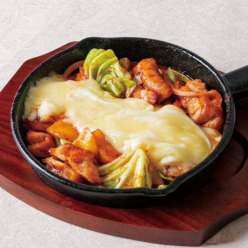 韓国の鉄板料理で、鶏肉と野菜を甘辛いソースで炒めました。豊