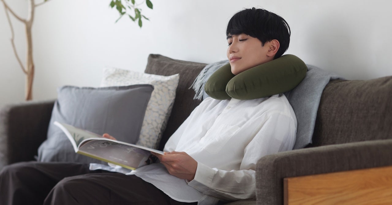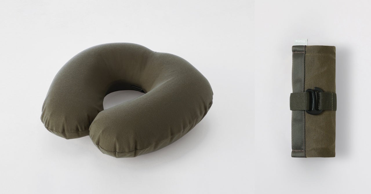 ひと息で膨らみ、小さくたためる「fuu ネックピロー」にWEB限定色のカーキが新発売