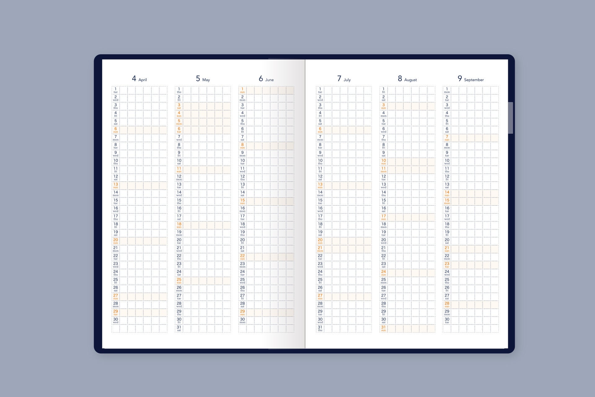・折りたたみ月間ページのマス目を大きく、書きやすく