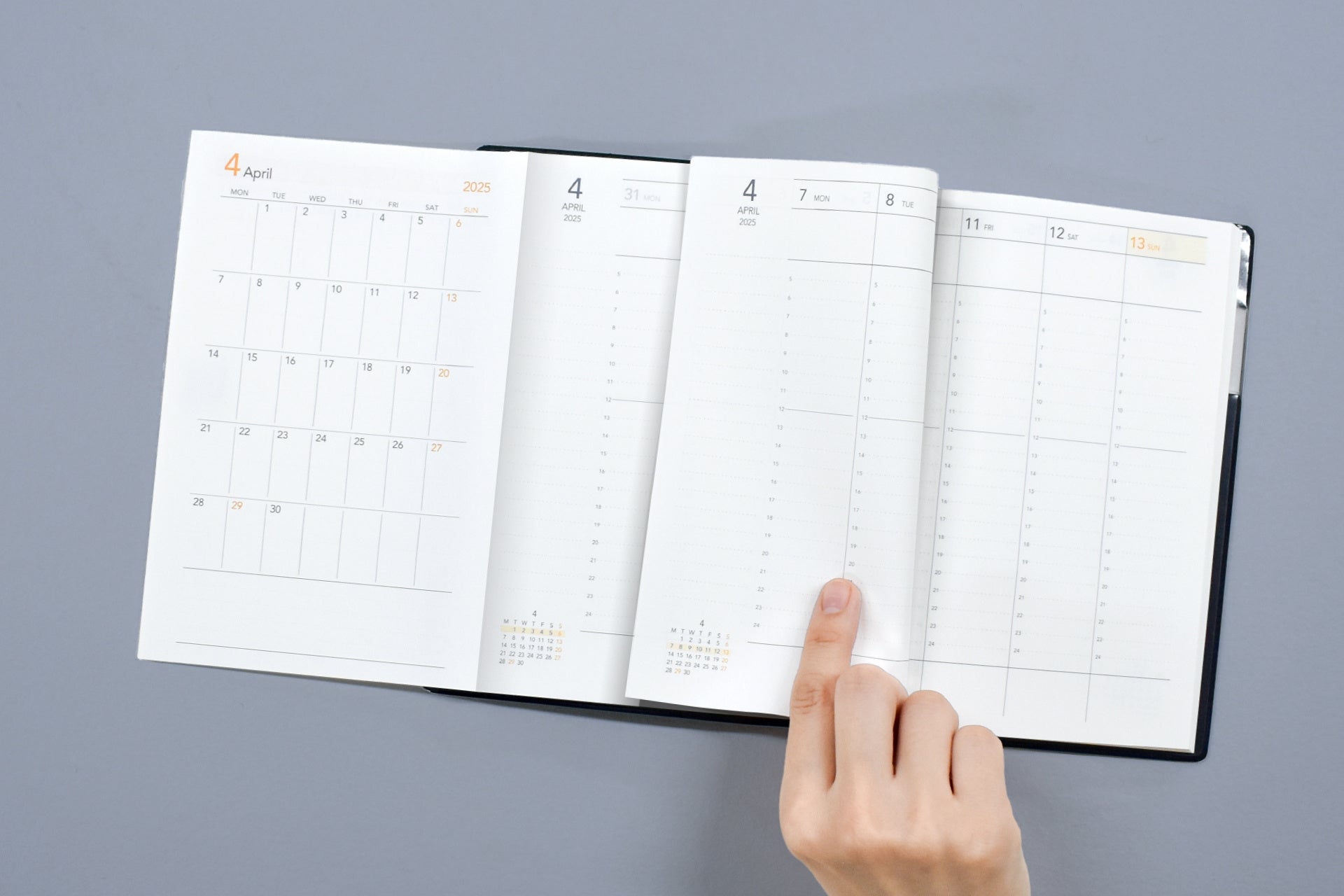 ・月間ページが折りたたみ式。どの週とも同時に見られる