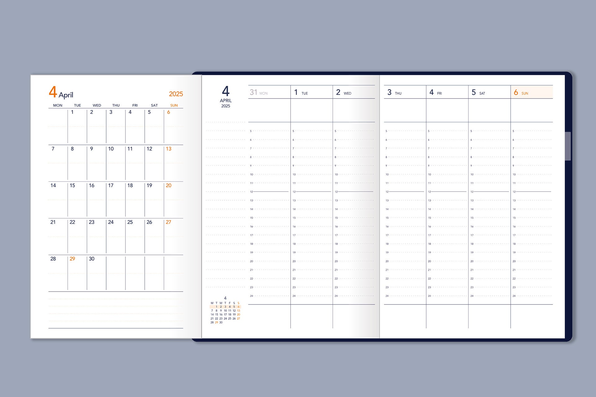 月と週の予定がひとめで見渡せるので、予定管理が素早く間違いなく行えるように。「タイパ」を重視する層だけでなく、タスクの多い社会人、家族の予定を管理する主婦層に絶賛されています。特殊な工程を必要とするため、製本技術に自信のある手帳メーカーだから実現した仕様です。