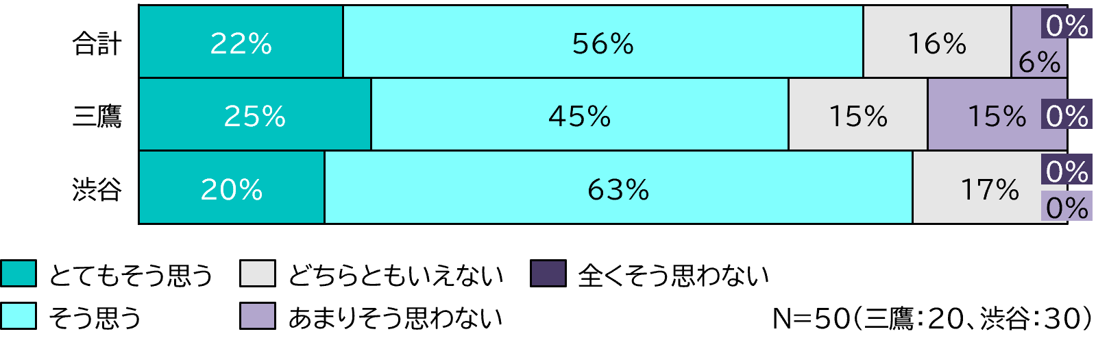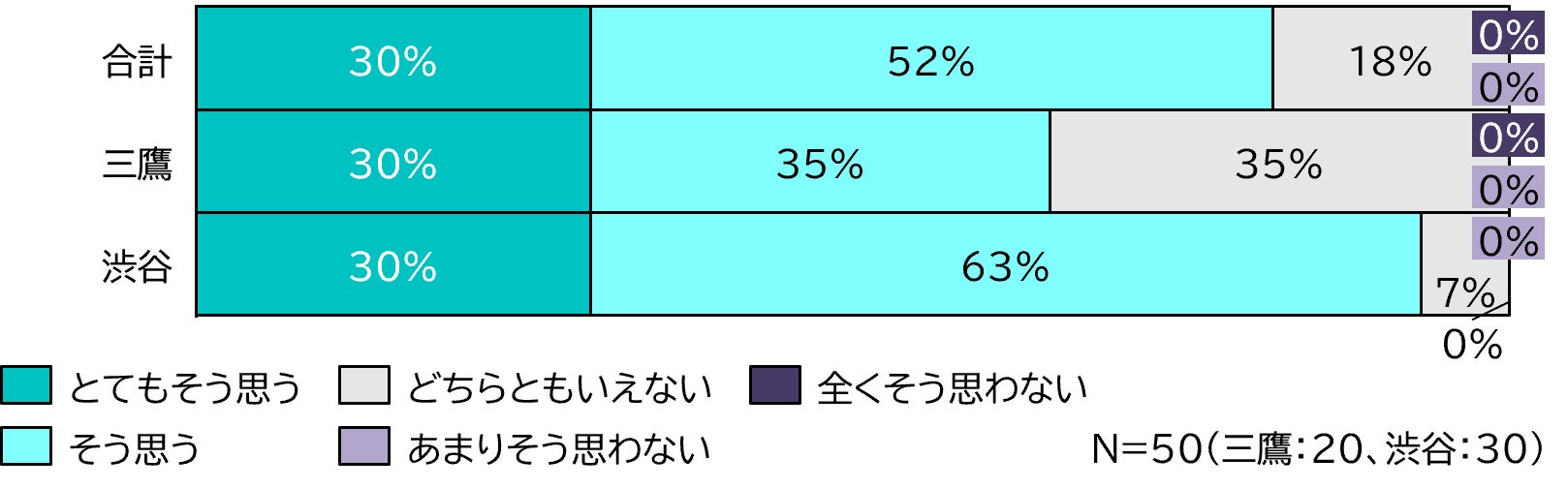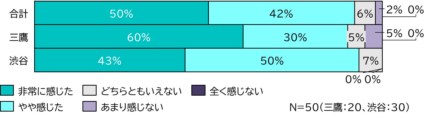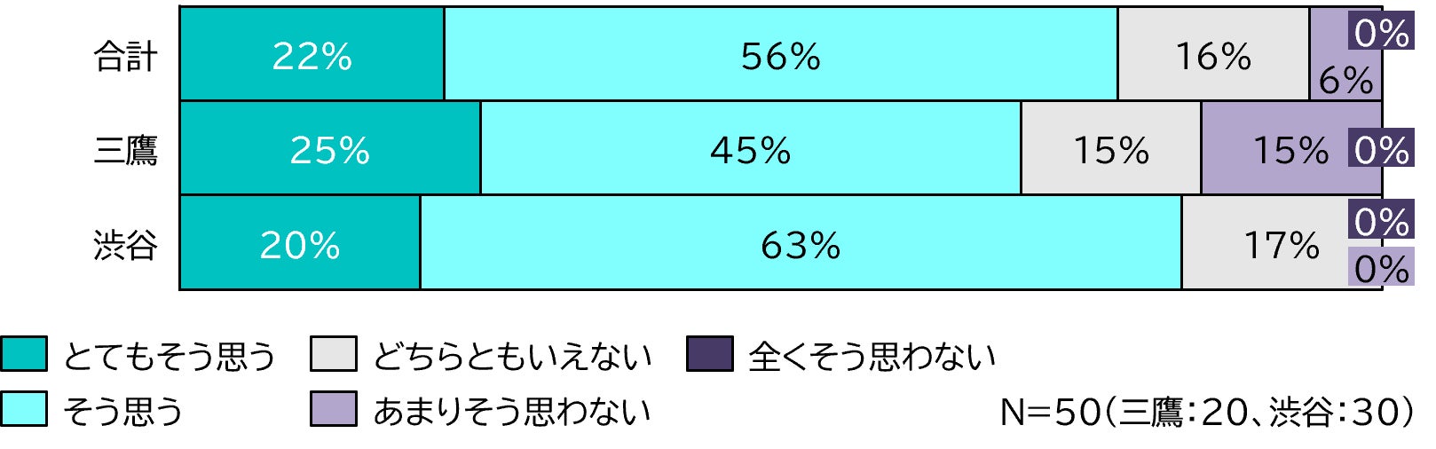 調査人数:渋谷エリア(n=20)、三鷹エリア(n=30)