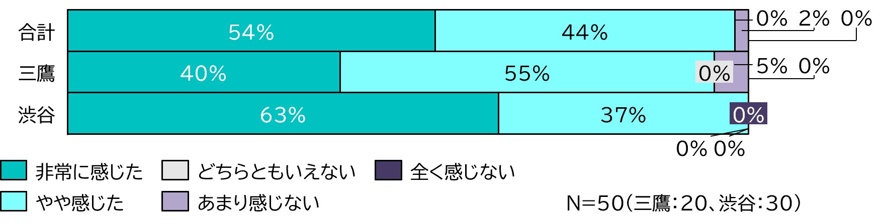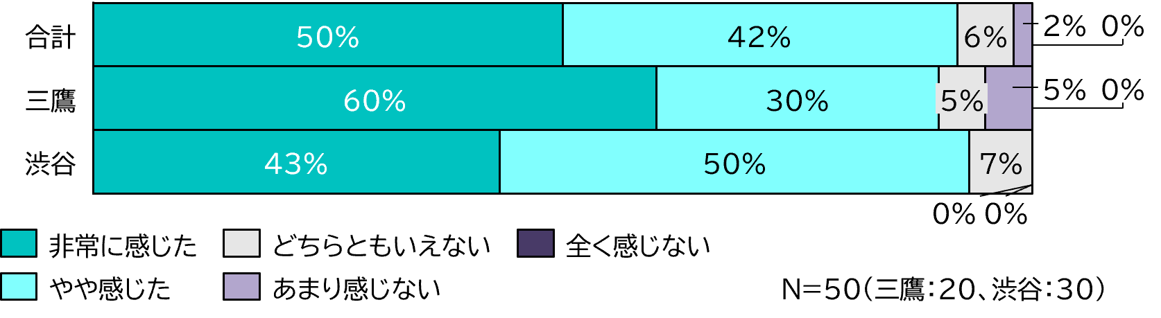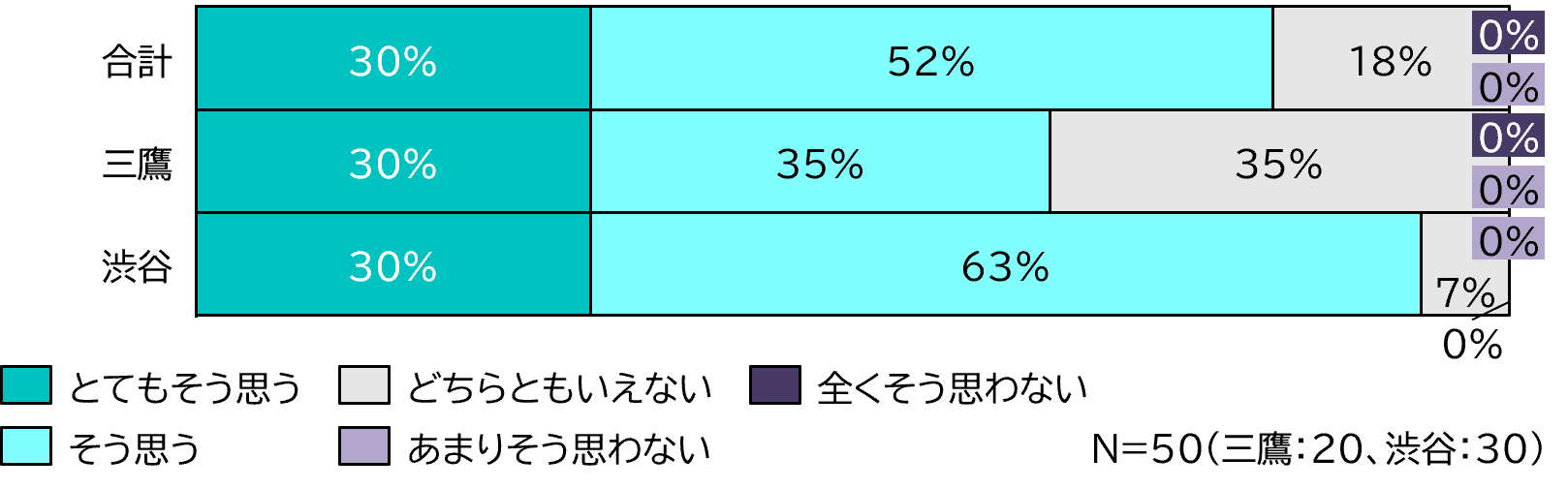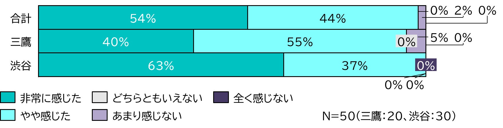 調査人数:渋谷エリア(n=20)、三鷹エリア(n=30)