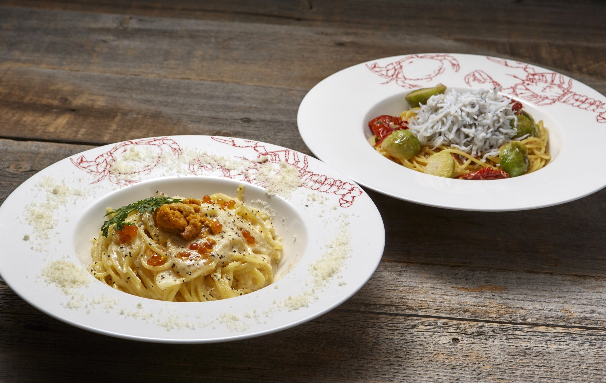 パスタも春夏仕様にバージョンアップいたします。ウニとイクラの贅沢コンビ「ウニとイクラの贅沢カルボナーラ」、大ぶりのしらすの塩味と芽キャベツのほろ苦さにトマトの風味を効かせた「国産釜揚げしらすと芽キャベツのペペロンチーノ」の2種をご用意いたしました。おひとりでもシェアして召し上がって頂いてもご満足いただけるボリューム感です。