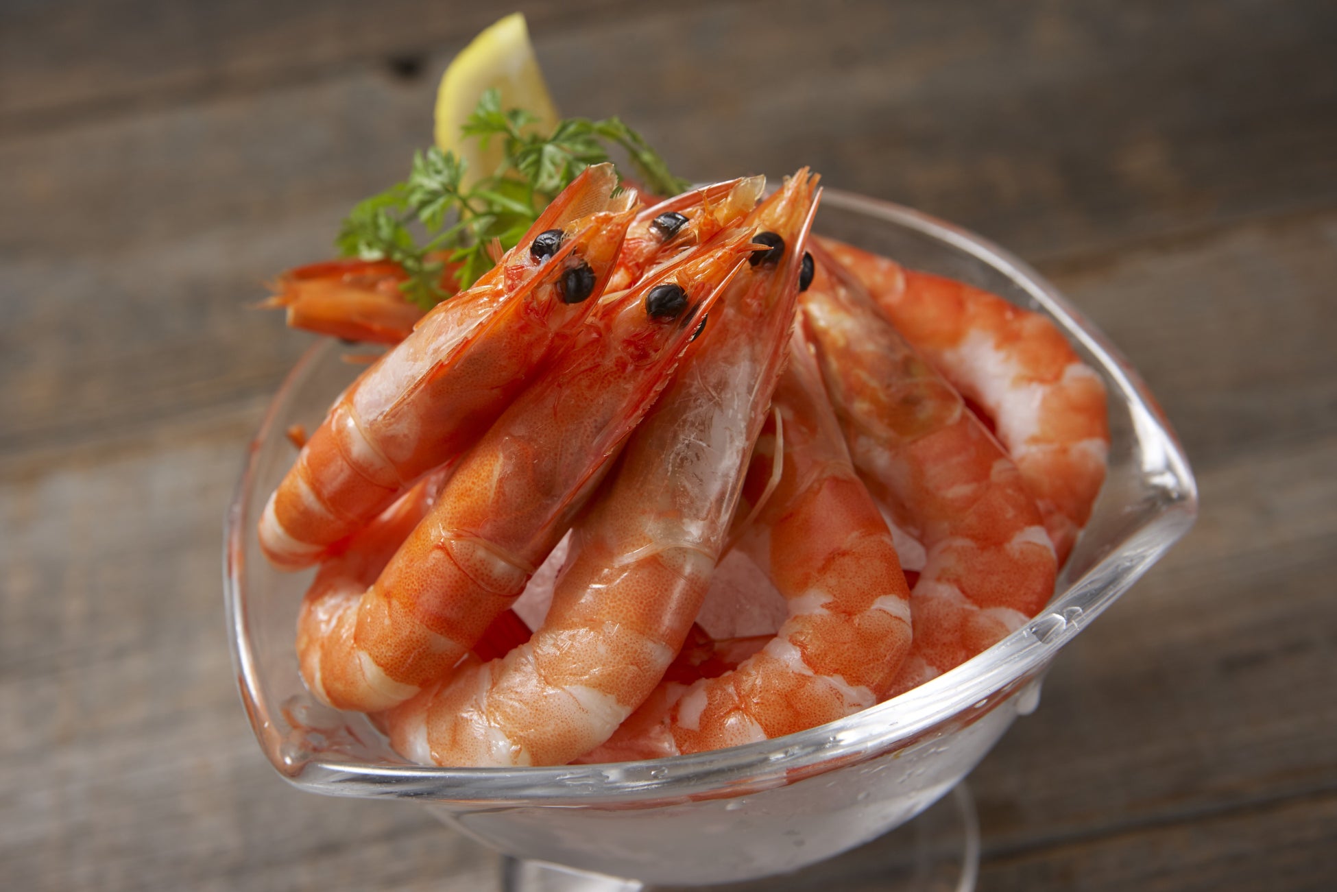 今回の変更の目玉はシーフードレストランのスターターとして欠かせない「カクテルシュリンプ」。今回から有頭海老を使用しております。頭肉部分もありボリューム感たっぷりに丸ごと海老をお楽しみ頂けるメニューにパワーアップいたしました。胴体部分の殻は剥いてあるため、頭を外してカクテルソースとレモンでお召し上がり下さい。