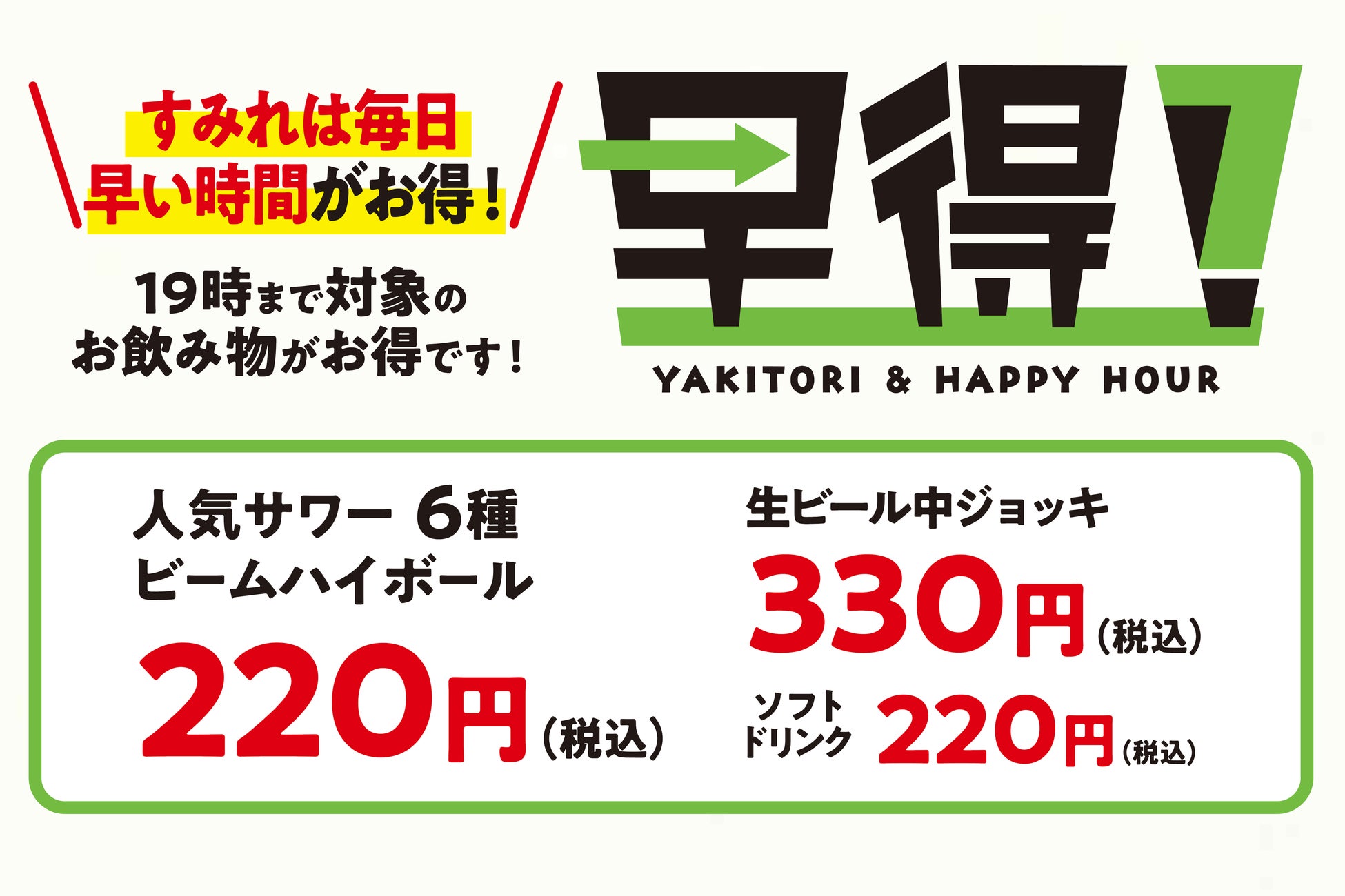 まん延防止等重点措置期間でなかなか外食できなかった皆様に、平日から気軽に焼き鳥を体験頂きたいという思いで、対象期間中はご来店頂いた全てのお客様に「人気商品を人数分半額」で販売いたします。また、早い時間から焼きたての焼き鳥を食べて頂けるように、「土日祝」の昼営業店舗を順次拡大中です。