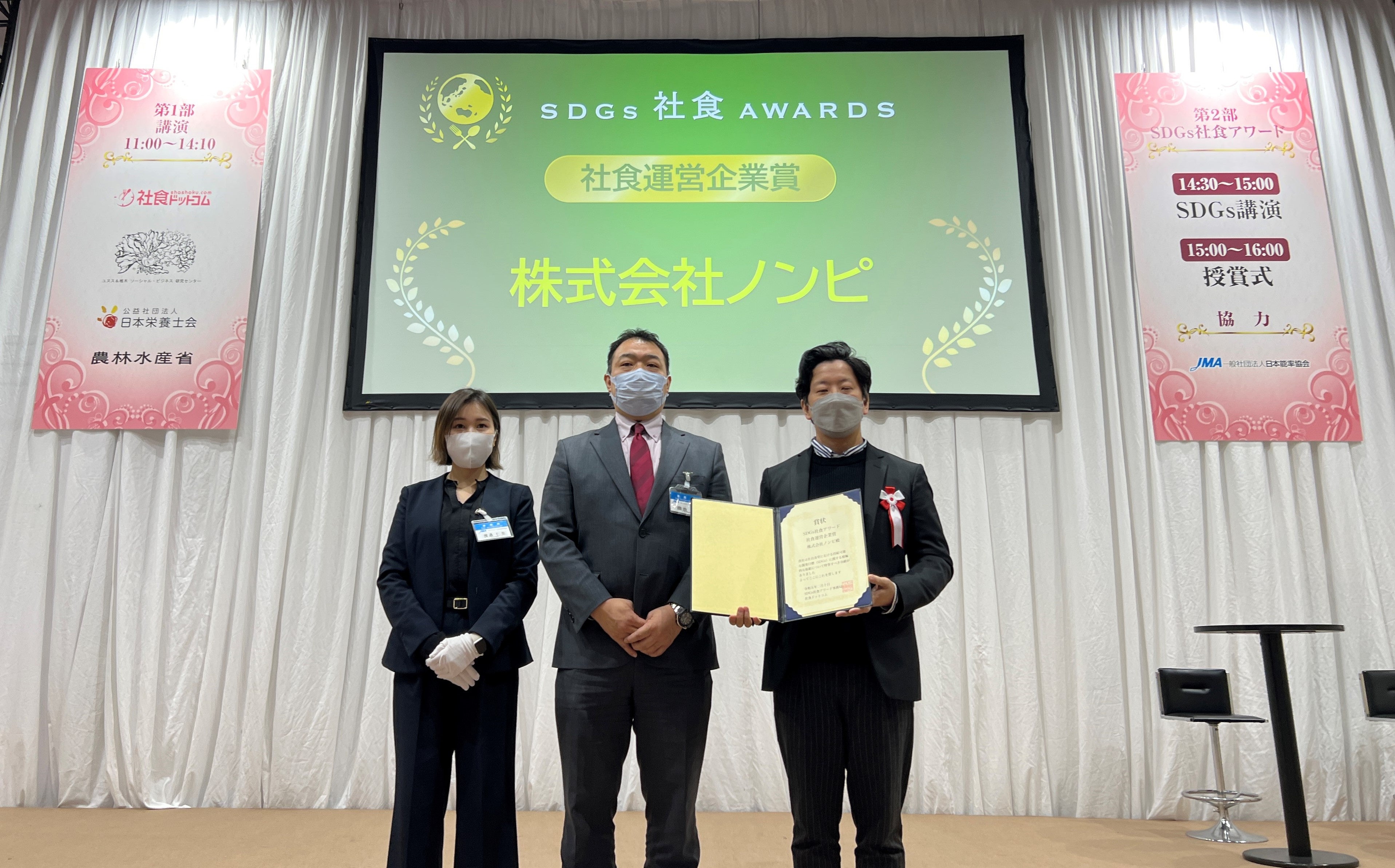 【受賞】社食の企画・運営を行う株式会社ノンピが、社食ドットコム主催の「SDGs社食AWARDS」で「社食運営企業賞」を受賞しました