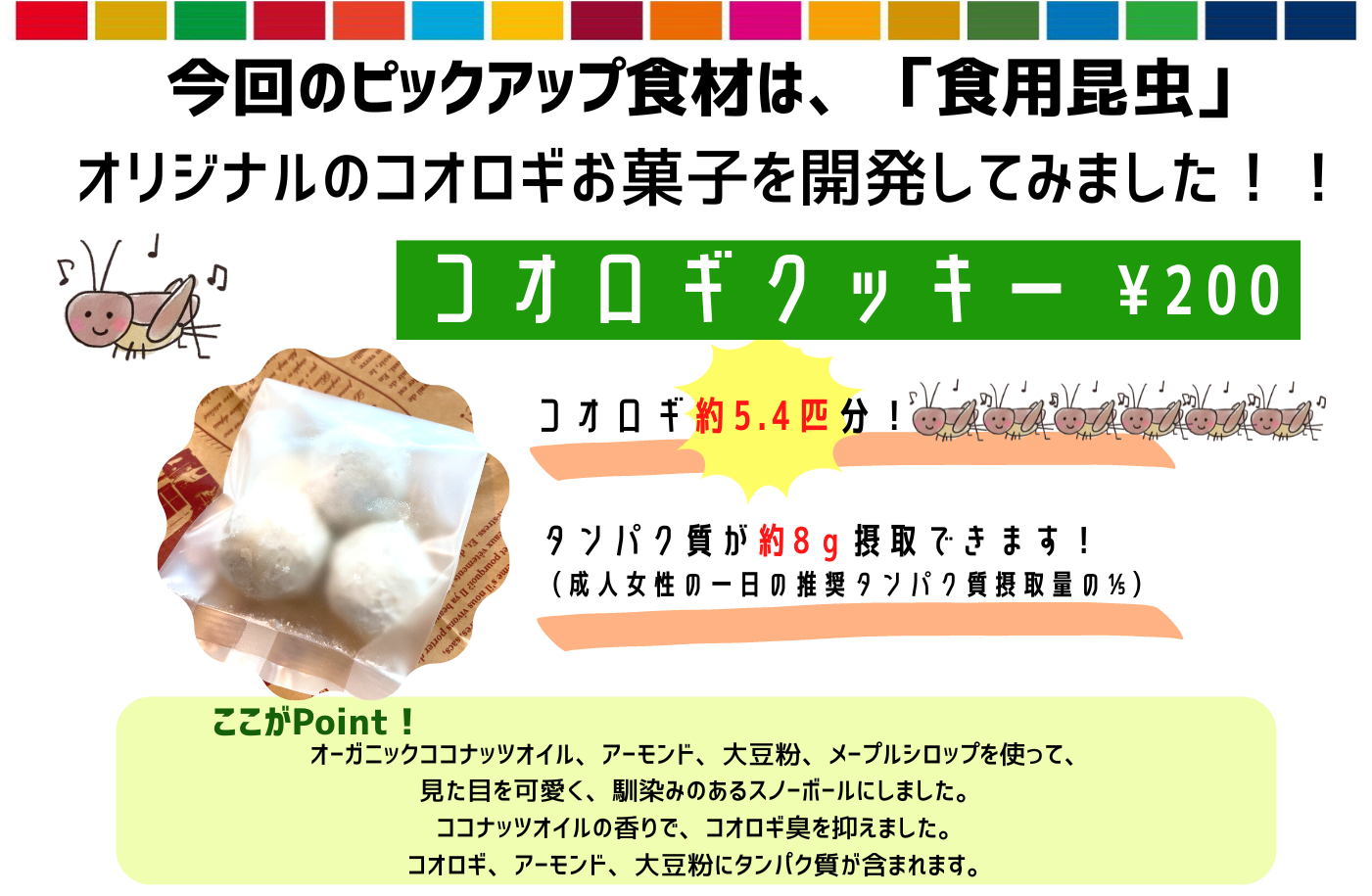 自社のパティスリー工場でコオロギパウダーを使用したオリジナルクッキーを製造し、社食でご提供しました。