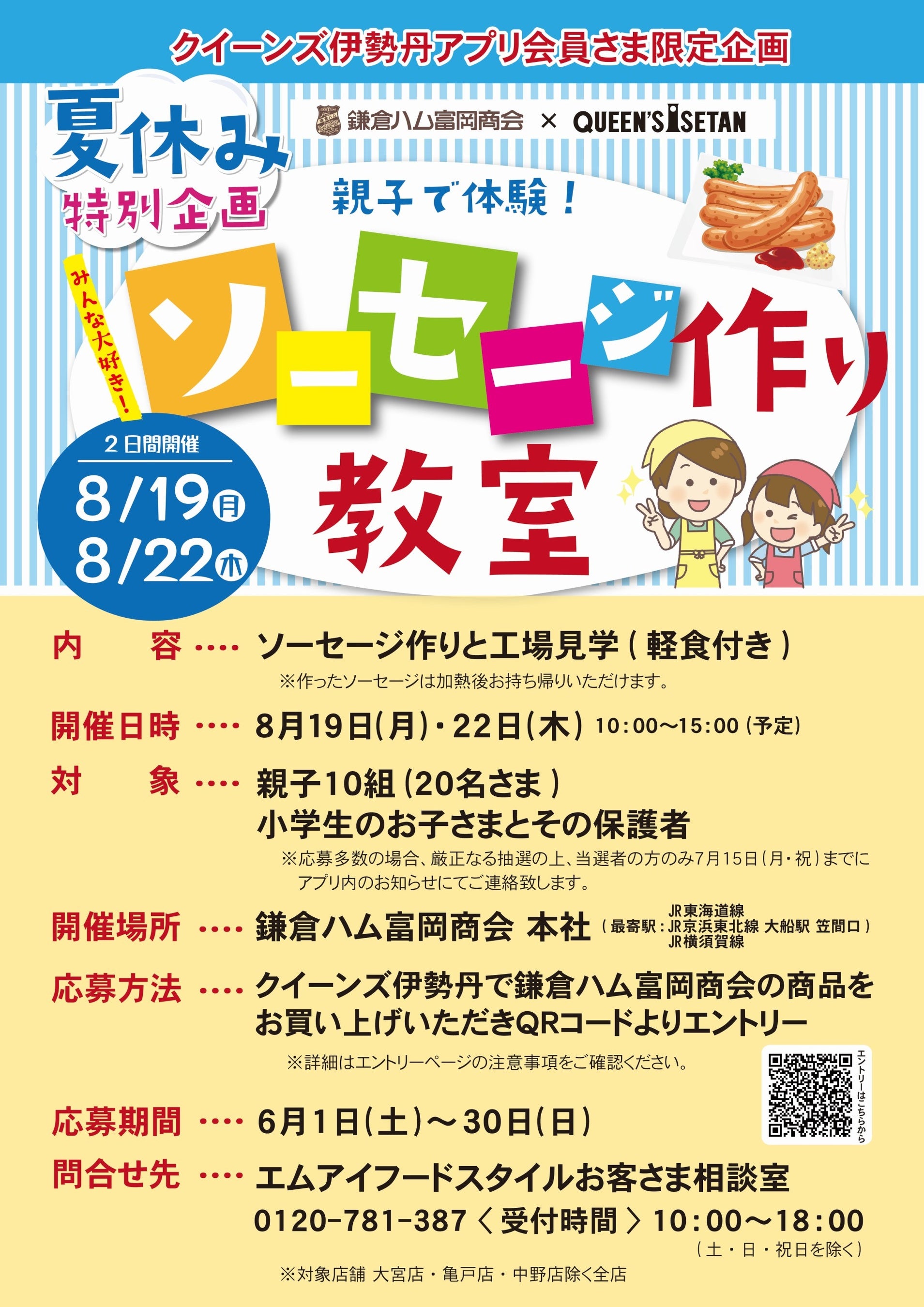 夏休み特別企画! 鎌倉ハム富岡商会×QUEEN’S ISETAN「親子で体験!ソーセージ作り教室」