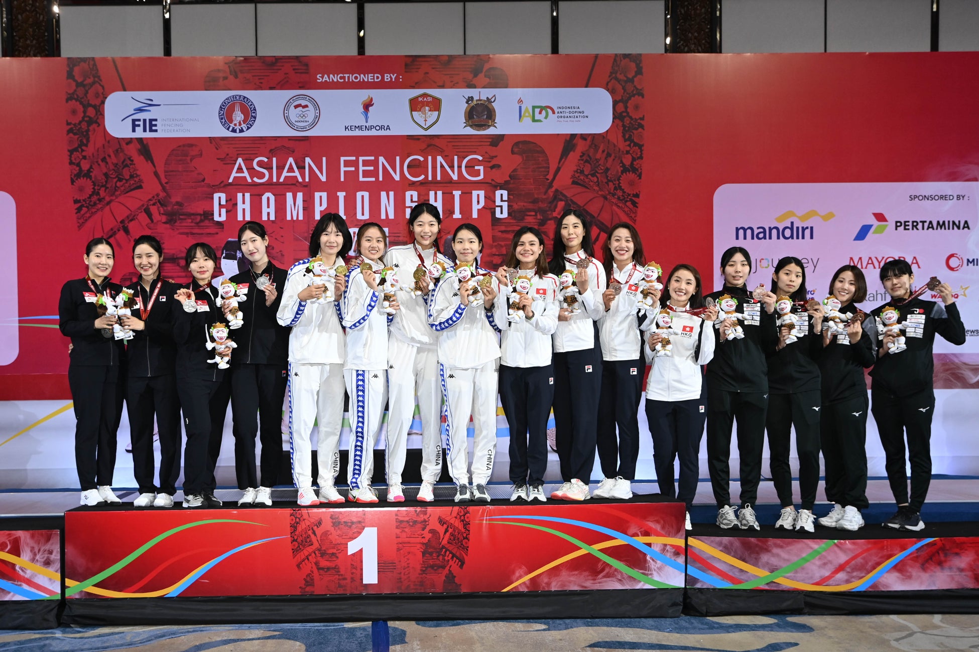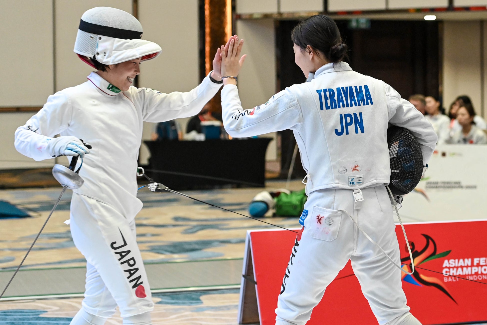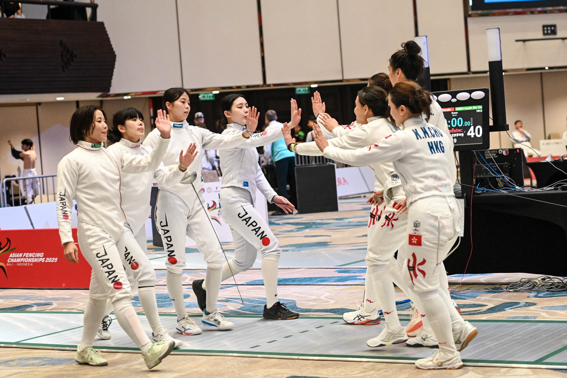 今大会をワールドランキング(WR)13位で迎えた女子エペチームは、準々決勝でカザフスタン(WR20位)に45対39、準決勝では韓国(WR3位)に27対45で惜敗。3位決定戦では香港(WR15位)に32対40で敗退したものの、アジアフェンシング連盟から銅メダルを授与されました。※過去、同率3位で2か国が銅メダル獲得でありましたが、現在、ワールドランキング付与のため3位決定戦を実施しております。