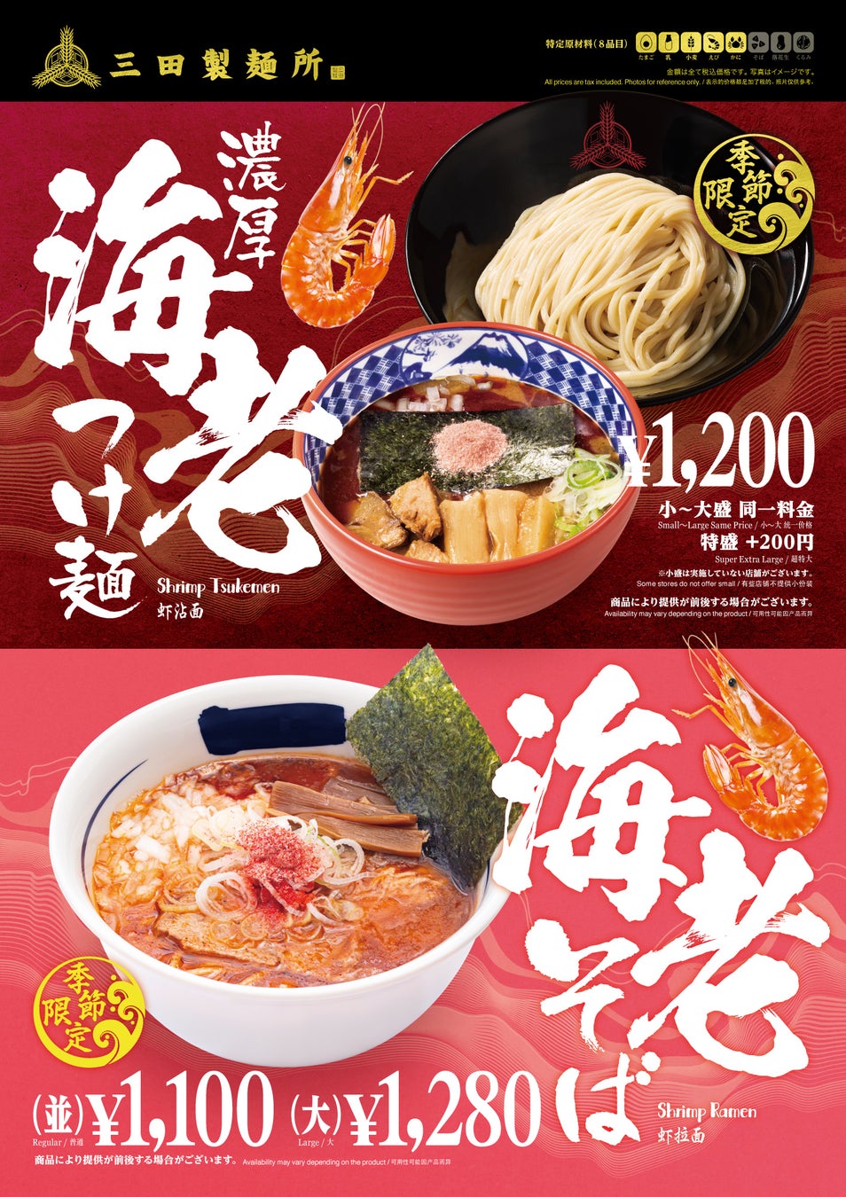 【三田製麺所】今年は海老の旨味がダブルで登場!『海老つけ麺&海老そば』が9月1日から期間限定発売!