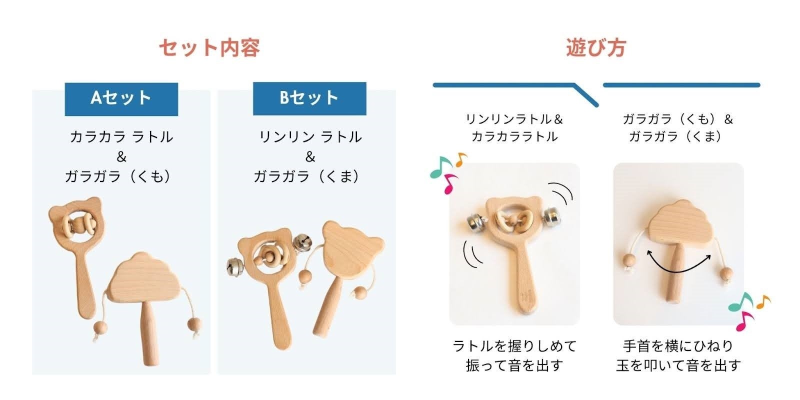 ①「Monteo 木のラトル&ガラガラセット」【楽天スーパーSALE限定 10%OFF!】