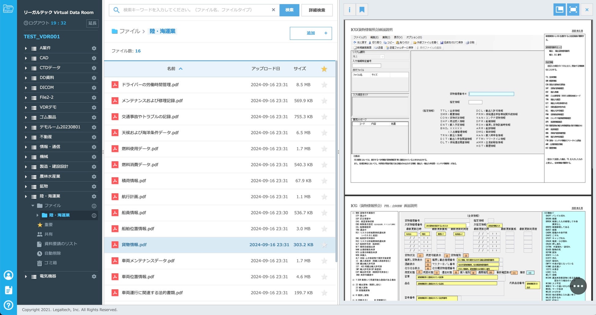 陸・海運業において、企業統合や買収(M&A)が行われる際、デューデリジェンスプロセスでは膨大な数の契約書や財務データの管理・共有が必要となります。リーガルテックVDRを使用することで、取引関連の機密文書を安全に共有でき、必要な情報を迅速に提供できるようになります。
