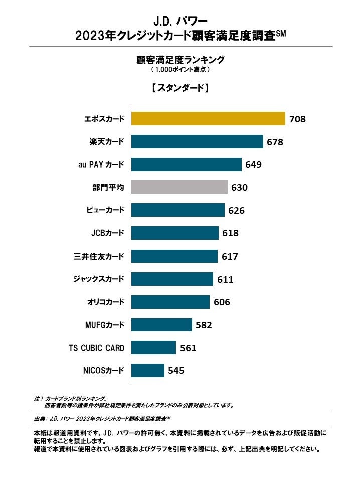 J.D. パワー 2023年クレジットカード顧客満足度No.1を発表
