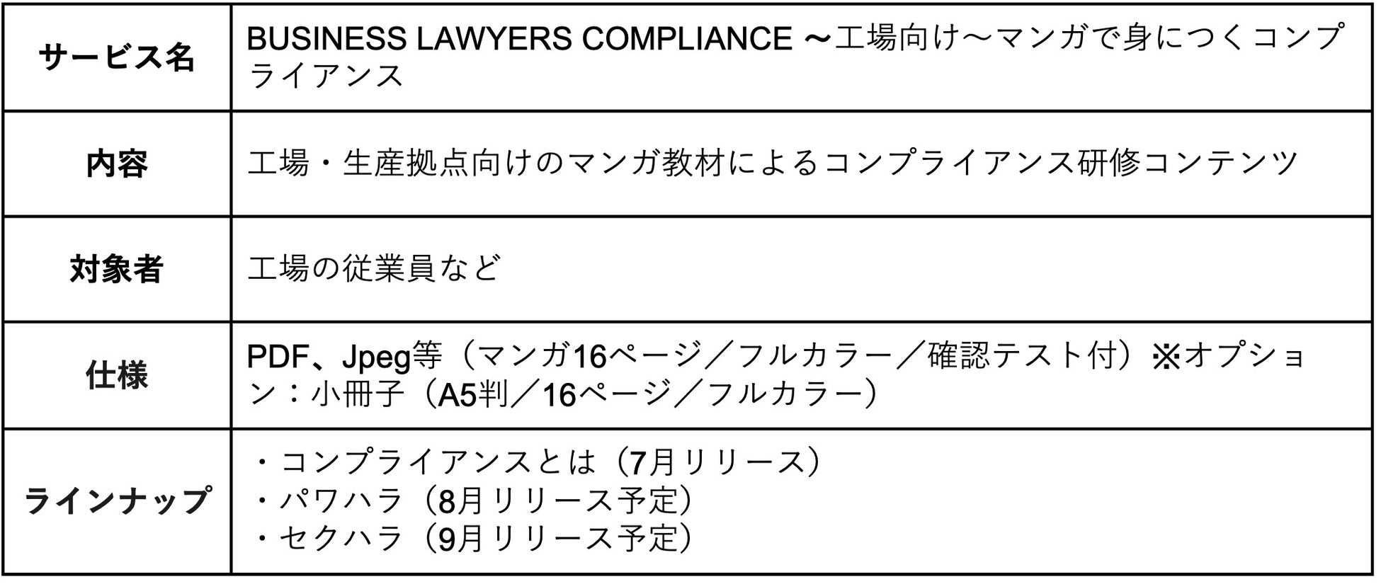 コンプライアンス研修の新たな形『BUSINESS LAWYERS COMPLIANCE~工場向け~マンガで身につくコンプライアンス』を提供開始