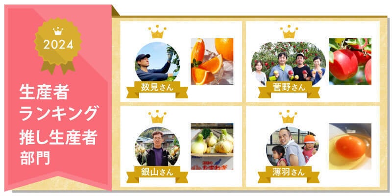 生産者と消費者をつなぐ国内最大級の産直アプリ「ポケットマルシェ」を運営する株式会社雨風太陽(本社:岩手県花巻市、代表取締役:高橋 博之、証券コード:5616、以下「当社」)は、2024年の生産者ランキングを発表しました。本年は、ポケットマルシェの生産者ランキングとしては初となる「推し生産者部門」「加工食品部門」を新設し、「推し生産者部門」には800名以上のユーザーから応援の声が集まりました。