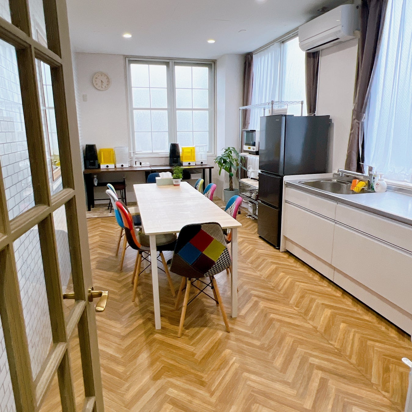 2階のレンタルスペースCは事前予約制。キッチンがあり、1部屋まるごと使って、料理教室をしたり、ワークショップも開催OK。女子会や会合、ミーティングなど、さまざまな目的でご利用いただけます。