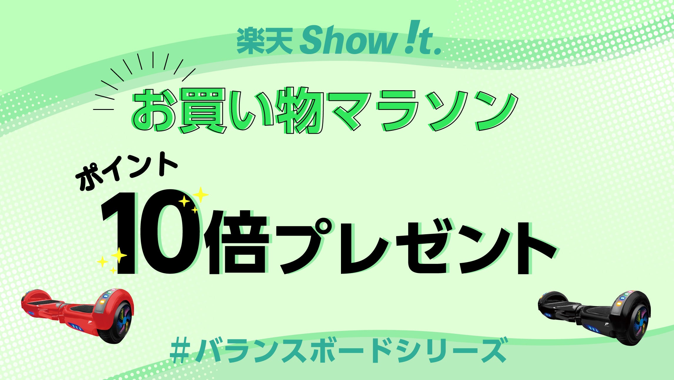 楽天市場「Show !t」8月4日(木)20時から、好評の電動バランスボードを購入でキッズプロテクターと収納バックプレゼントキャンペーン第3弾を実施。また、ポイント10倍!楽天お買い物マラソンに参加。