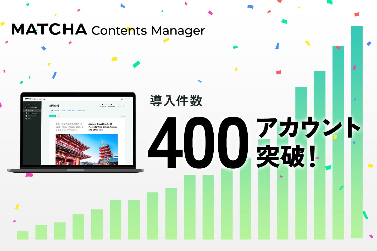 国内最大級のインバウンド向け多言語CMS「MATCHA Contents Manager」の導入件数が400件を突破