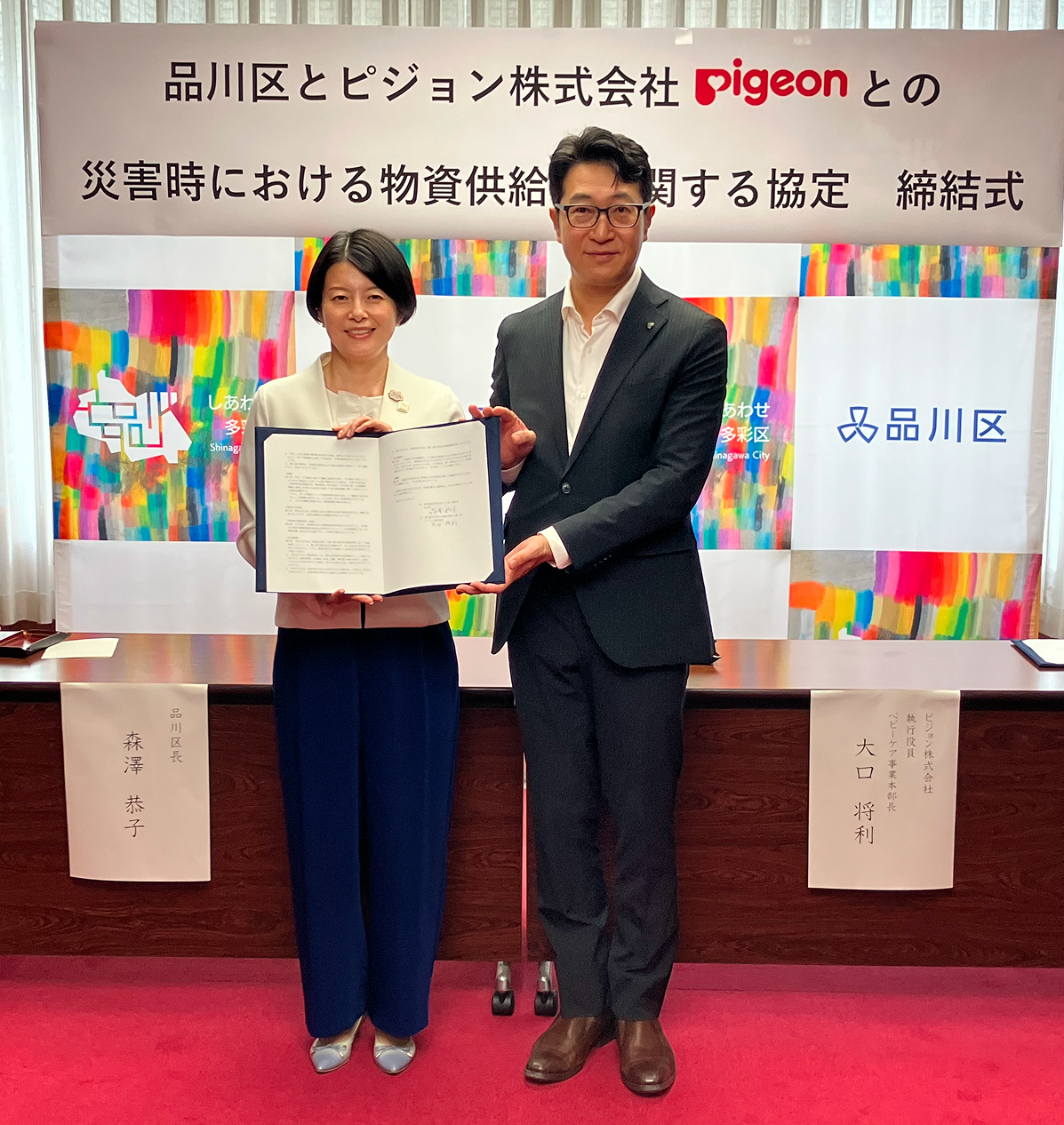 この度、東京都品川区様と「災害時における物資供給等に関する協定」を締結できますこと、心より光栄に存じます。品川区様におかれましては、「品川区こども計画」を策定され、安心して過ごせる社会環境の整備を進めておられます。当社としましては、これまで長年にわたり培ってまいりました子育て支援に関する経験、並びにその他関連分野における知見を、品川区様のお取り組みへ提供することにより、地域社会の活性化に貢献できればと考えております。今回の協定を通じて、品川区様が目指す「誰もが自分らしく暮らせるまち」の実現と持続可能な発展に貢献できるよう、努めてまいります。