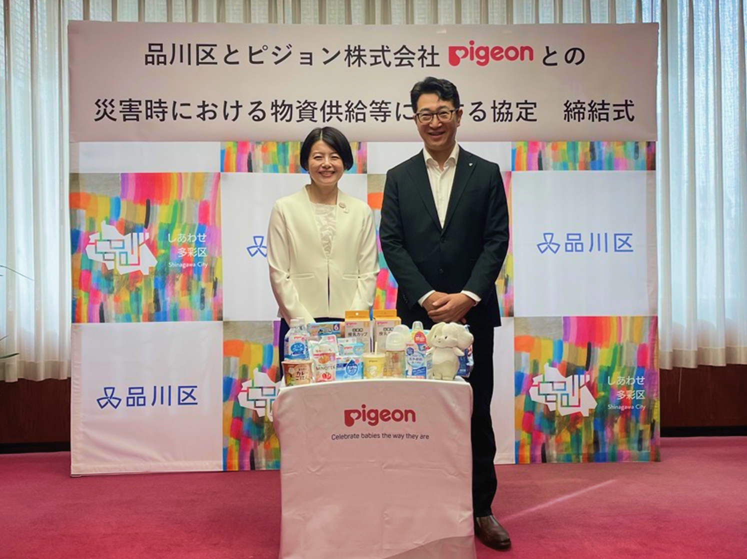 このような状況を受け、共に赤ちゃんや子どもにやさしい社会を目指す当社と品川区は、激甚化する災害への備えの重要性を考慮し、災害時に赤ちゃんやその家族が直面する課題を少しでも軽減するため、乳幼児用品や生活物資の提供に関わる本協定の締結に至りました。