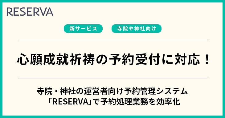 【寺院・神社の運営者向け】クラウド型予約管理システム「RESERVA」が、心願成就祈祷の予約受付システムをリリース