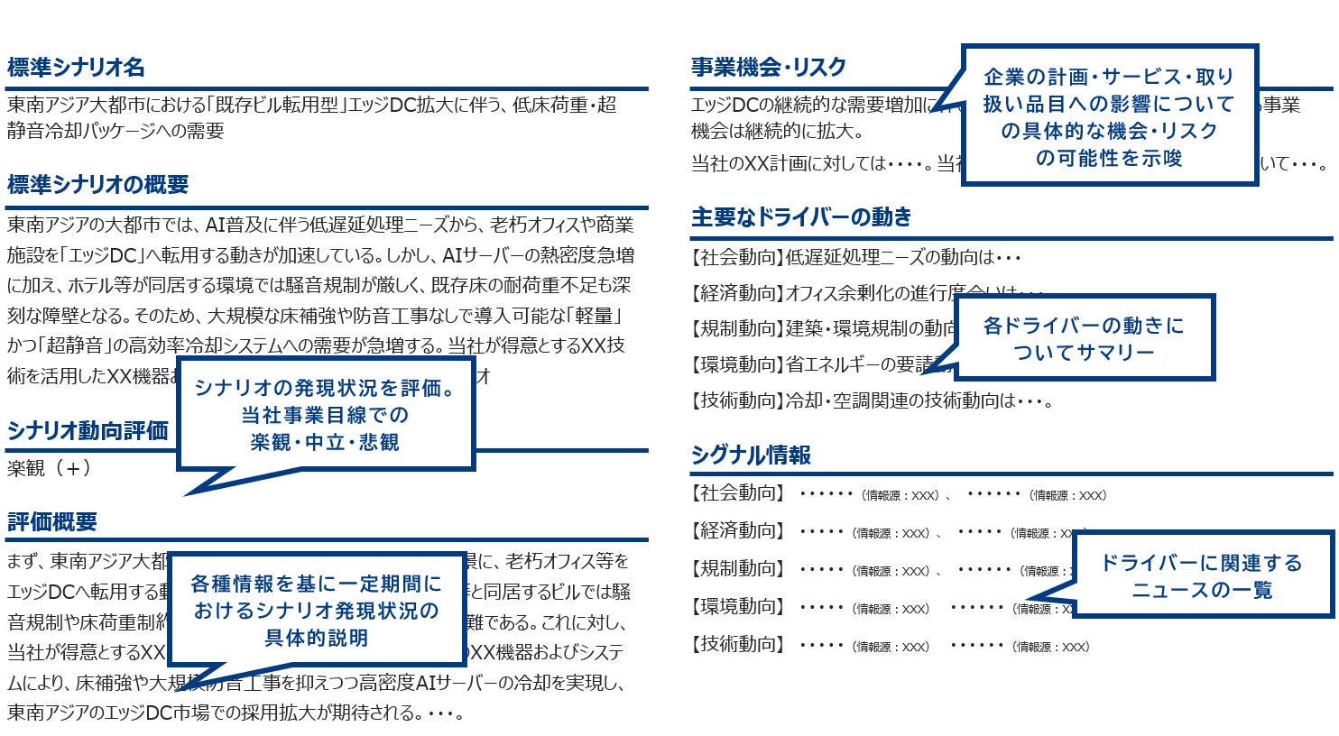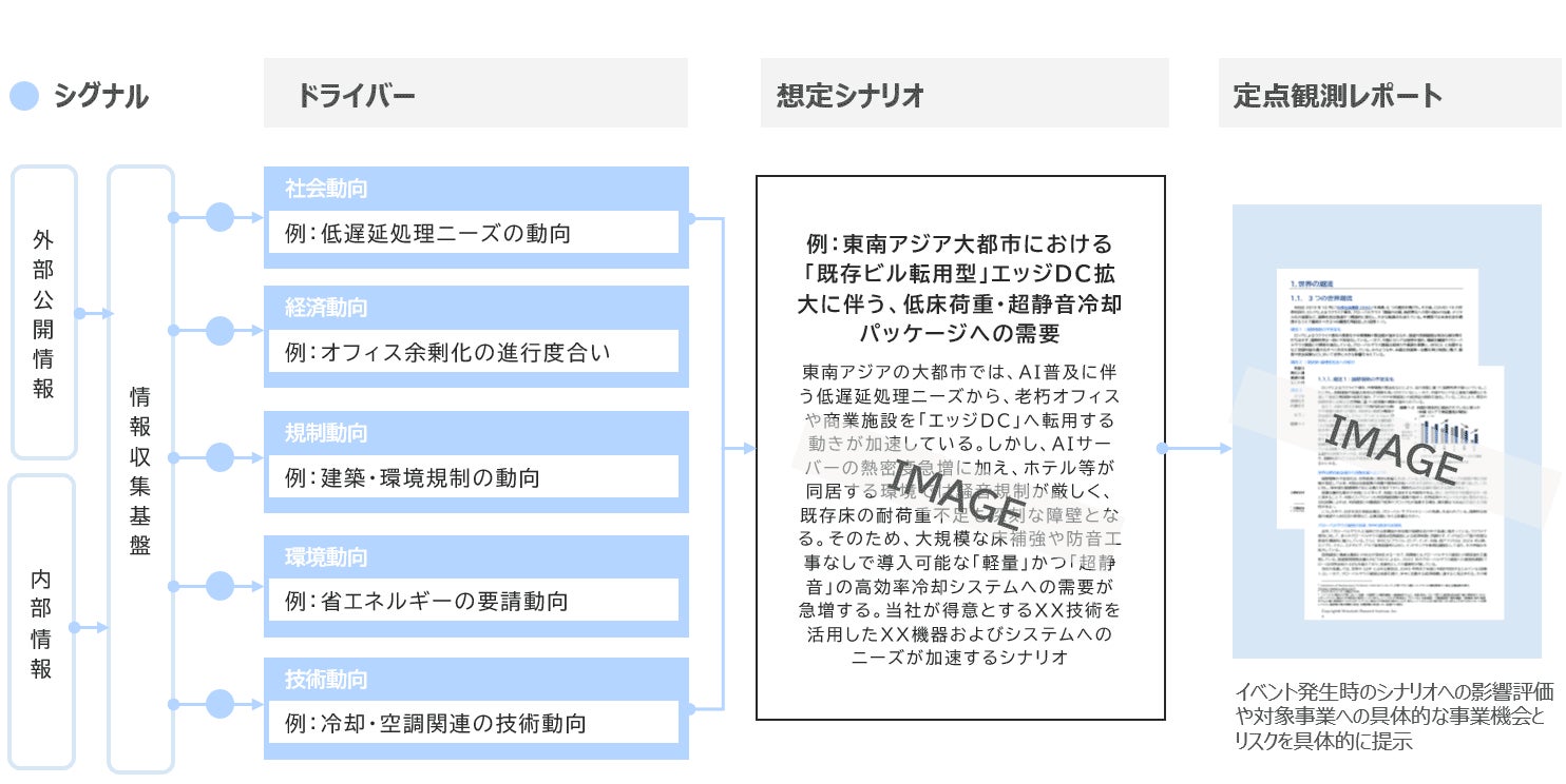 近年、地政学リスクなど企業を取り巻く急激な外部環境の変化は予想外の損失を生じさせる一方で、技術革新や地政学がもたらす市場構造の変化は新たなビジネスチャンスを生み出すきっかけになっています。このため、企業の成長戦略において外部環境変化の動向分析と事業機会の評価はこれまで以上に重要となっています。しかし、膨大な情報を収集・分析し、将来の見通しや企業にとっての機会を評価するには多大な手間とノウハウが必要なため、事業機会の発見が遅れていることが課題になっています。