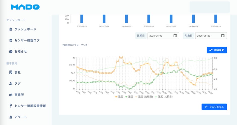 2025年6月に改正労働安全衛生規則が施行され、WBGT値※などに基づく暑熱リスクの評価と対策が、事業者に義務づけられました。これにより、全国の現場では「毎日温度計を見に行き記録する」という手間のかかる業務が発生しています。こうしたなか、設置するだけで温湿度などの空気データを自動で取得し、クラウドに記録できる「MADO」は、手間なく、かつ信頼性の高いデータ蓄積を可能にするソリューションとして注目を集めています。