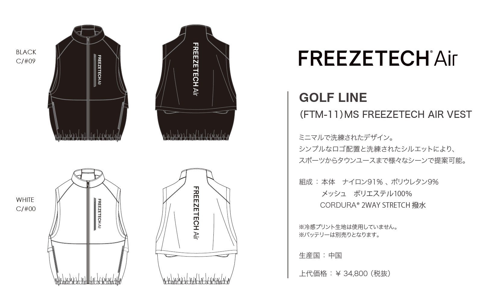 さらに、小型化とデザイン性を追求して誕生した「FREEZETECH Air」の電動ミニファン付きベストと併用することで、炎天下でのプレー環境をより快適に整え、パフォーマンスをサポートします。