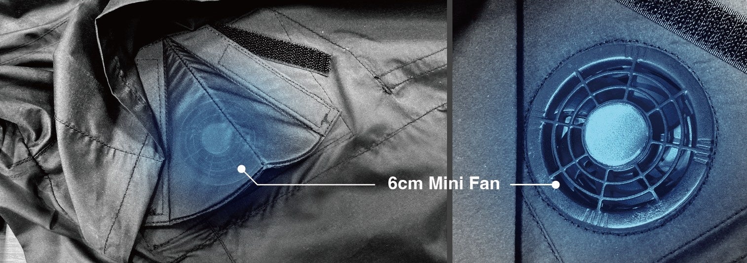 表面からファンが直接的に見えず、吸引を妨げないテントパーツを採用。デザインの邪魔にならずさり気ない暑さ対策が可能。小型ファンだからこそ、今まで困難だったデザインでの展開が可能。