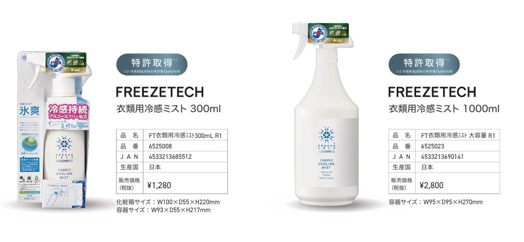 更に、「フリーズテック衣類用冷感ミスト」は、独自技術(※3) でアルコールフリー(※4) 処方を実現しました。