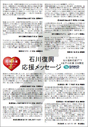 本取り組みが、日常生活の再開に向けて努力されている地元石川県の方々の一助となりますことを切に願っております。また、被害を受けられた皆様に対しまして、心からのお見舞いを申し上げますとともに、一日も早い復興をお祈りいたします。