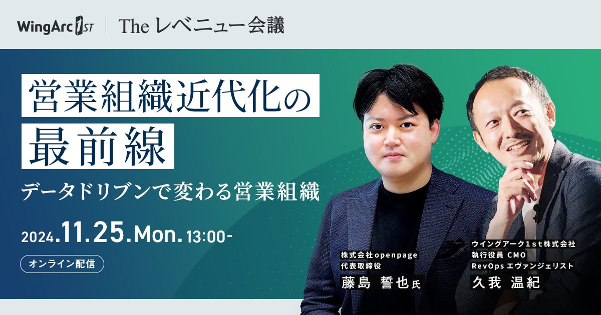 ウイングアーク1st株式会社は、CRO(最高収益責任者)や営業、マーケティング、経営企画、営業企画部等の方に向けたセミナーシリーズ「Theレベニュー会議」の最新作として「営業組織近代化の最前線~データドリブンで変わる営業組織~」を11/25(月)13時からオンラインで開催します。