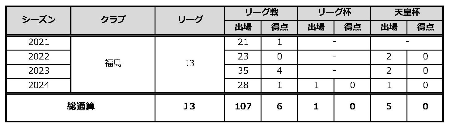 サッカー歴:高須SC→セレッソ大阪西U-15→セレッソ大阪U-18→産業能率大→福島ユナイテッドFC