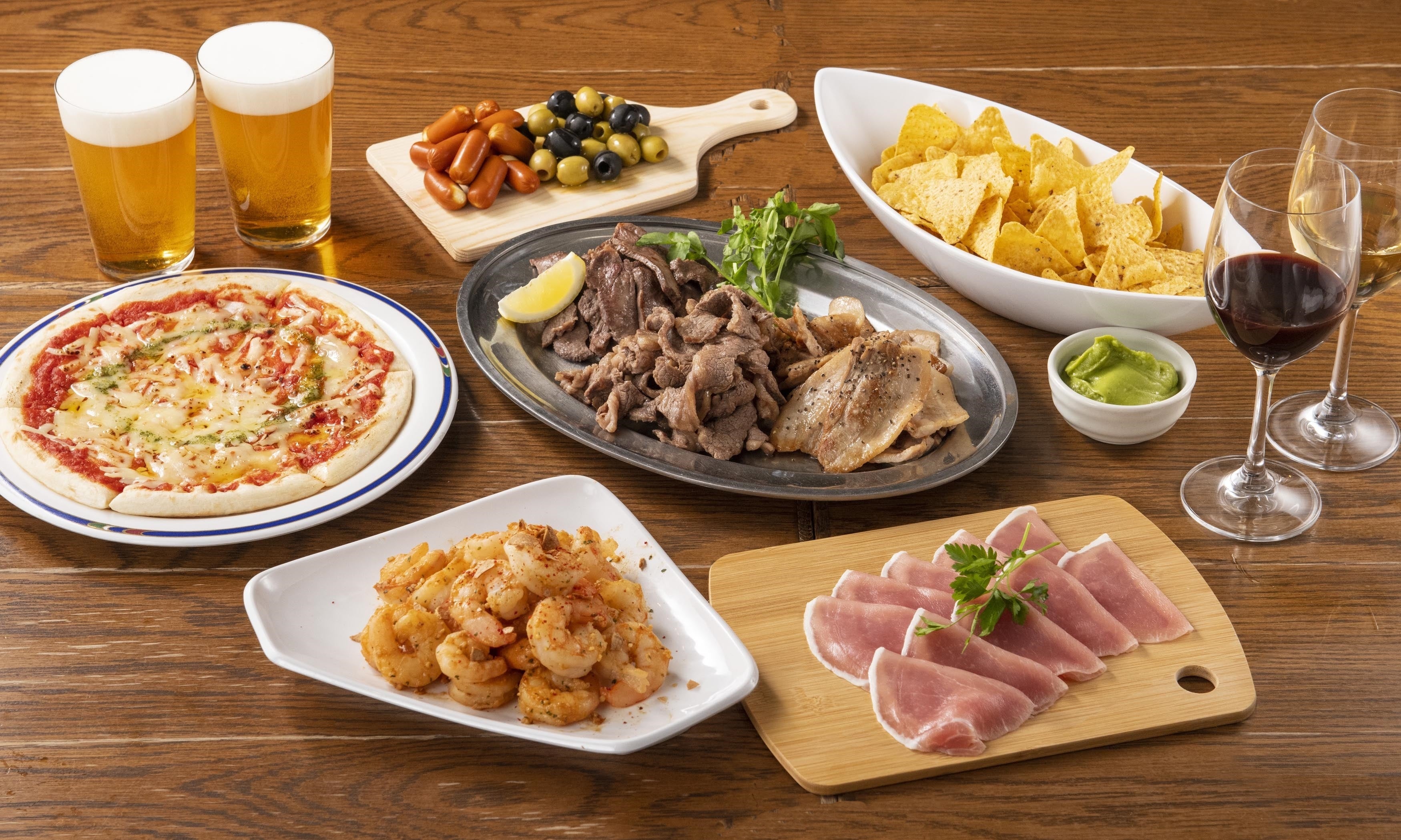 ●生ハムプレート ●グリルミートプレート ●ガーリックシュリンプ ●ミックスピザ