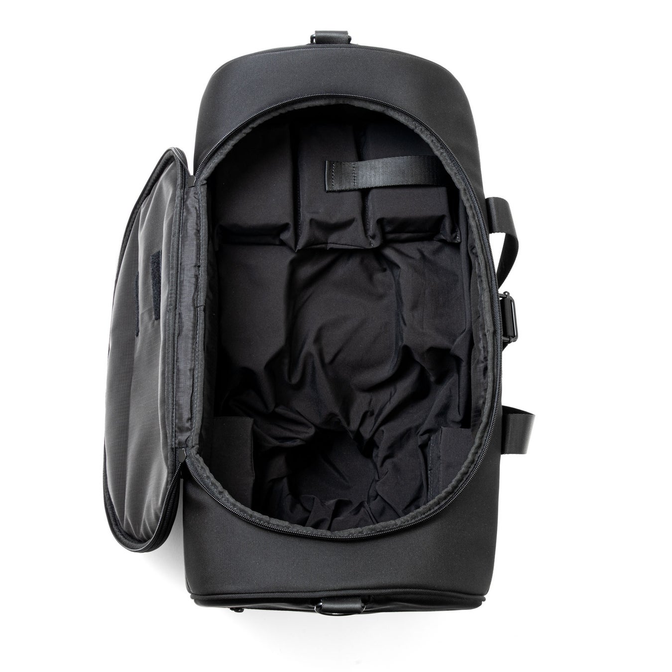 メインの収納部分にはチャージスタンドセット(別売)を入れるスペースがあり、サイドにはコンパクトなポケットがあることでスマートフォンや小物が収納可能です。