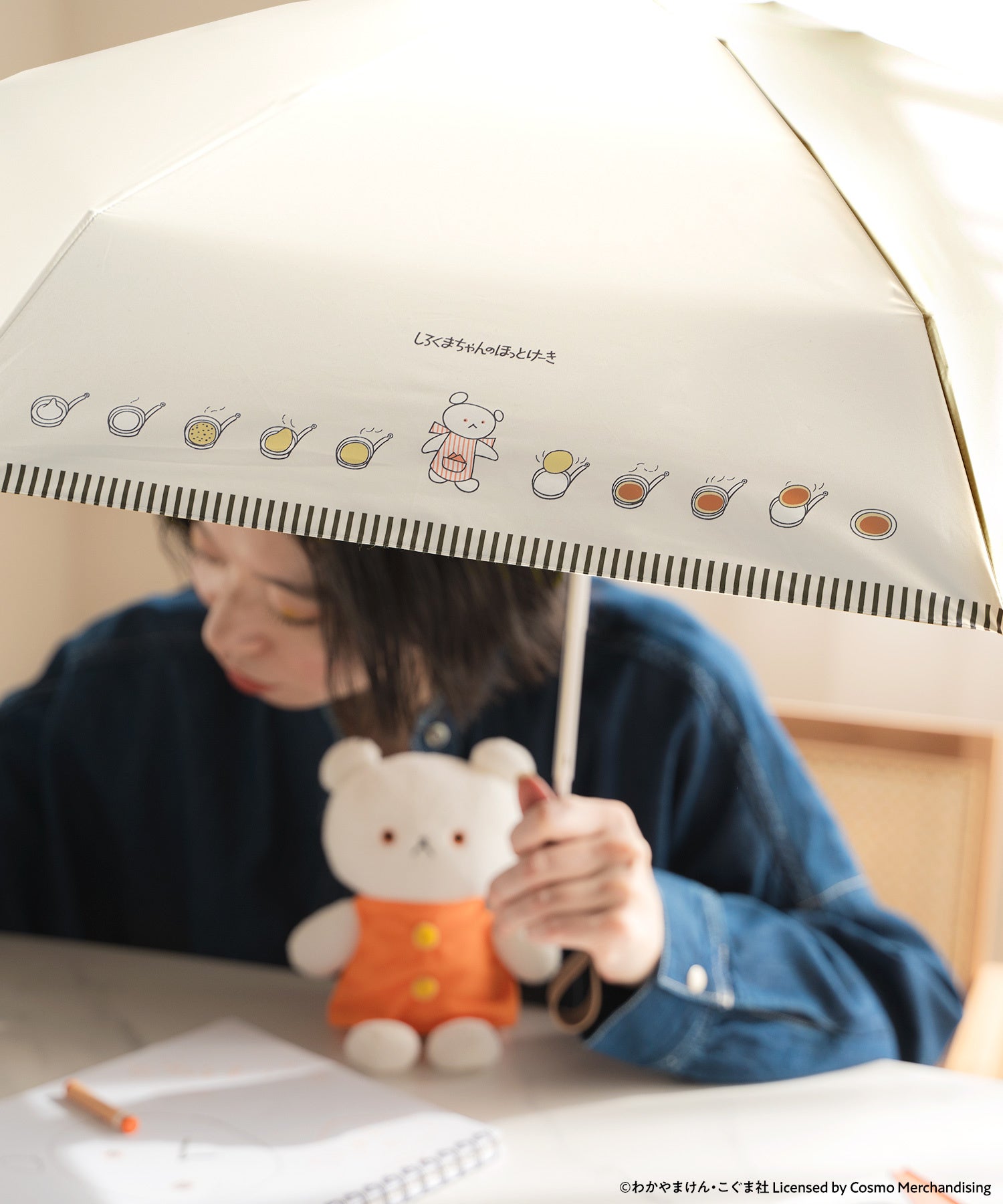 「こぐまちゃんえほん」シリーズでよく知られている『しろくまちゃんのほっとけーき』を題材にした日傘。作中に登場する、ゆっくりとホットケーキが焼けていく工程を傘の一部にプリントしました。美味しそうなホットケーキのできあがり!