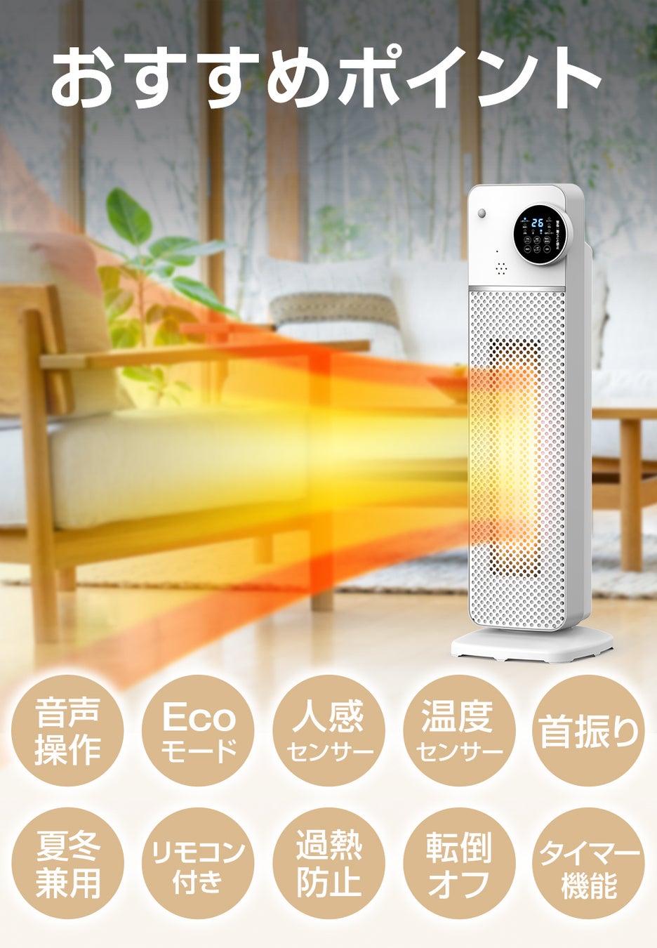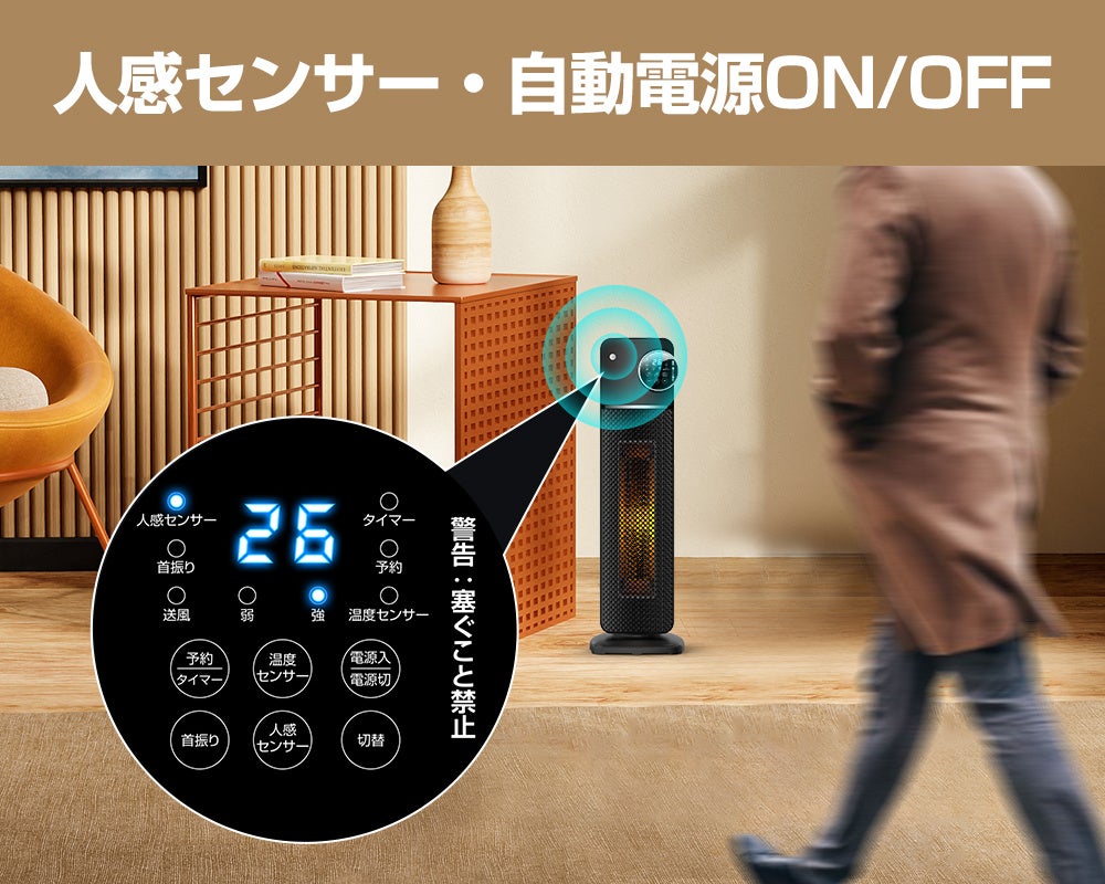 「1秒速暖」「人感センサー」「首振り機能」多機能が搭載されたコスパ高い1台!
