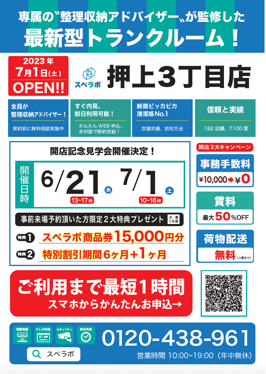 【押上3丁目店/7月1日(土)オープン】見学から契約、解約まで完全非接触・非対面、お申し込みからご利用まで最短1時間!都内、大阪などにて絶賛運営中のトランクルーム【スペラボ】が浅草線押上駅近くに出店!