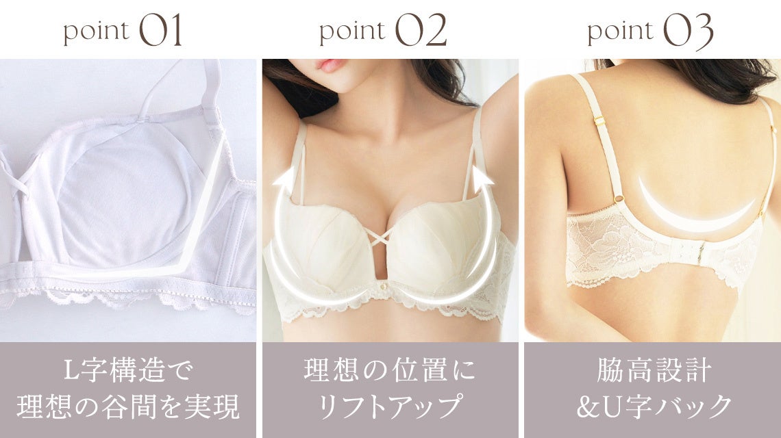 ソフトワイヤーを使用し、柔らかくバストラインに沿った自然な谷間メイクが叶うのも嬉しいポイント。